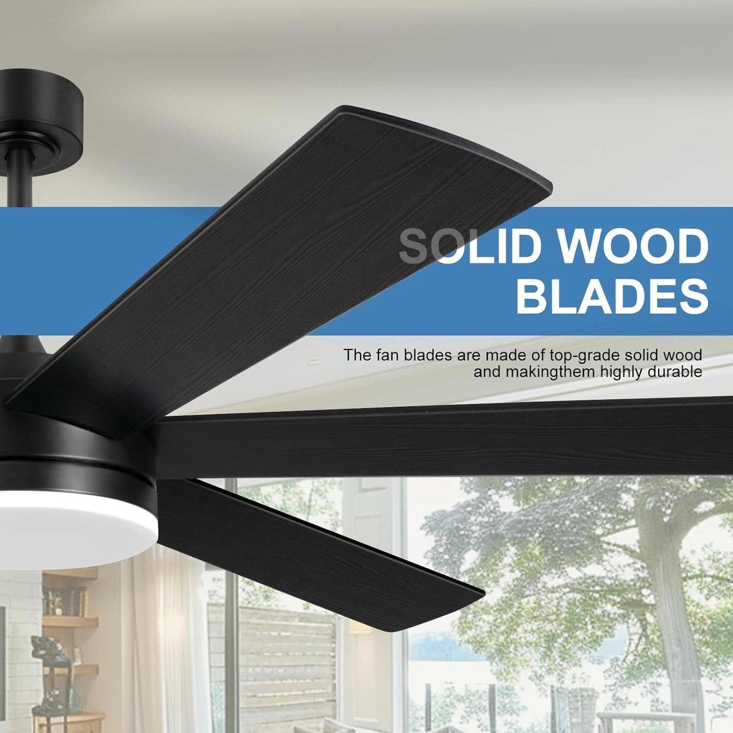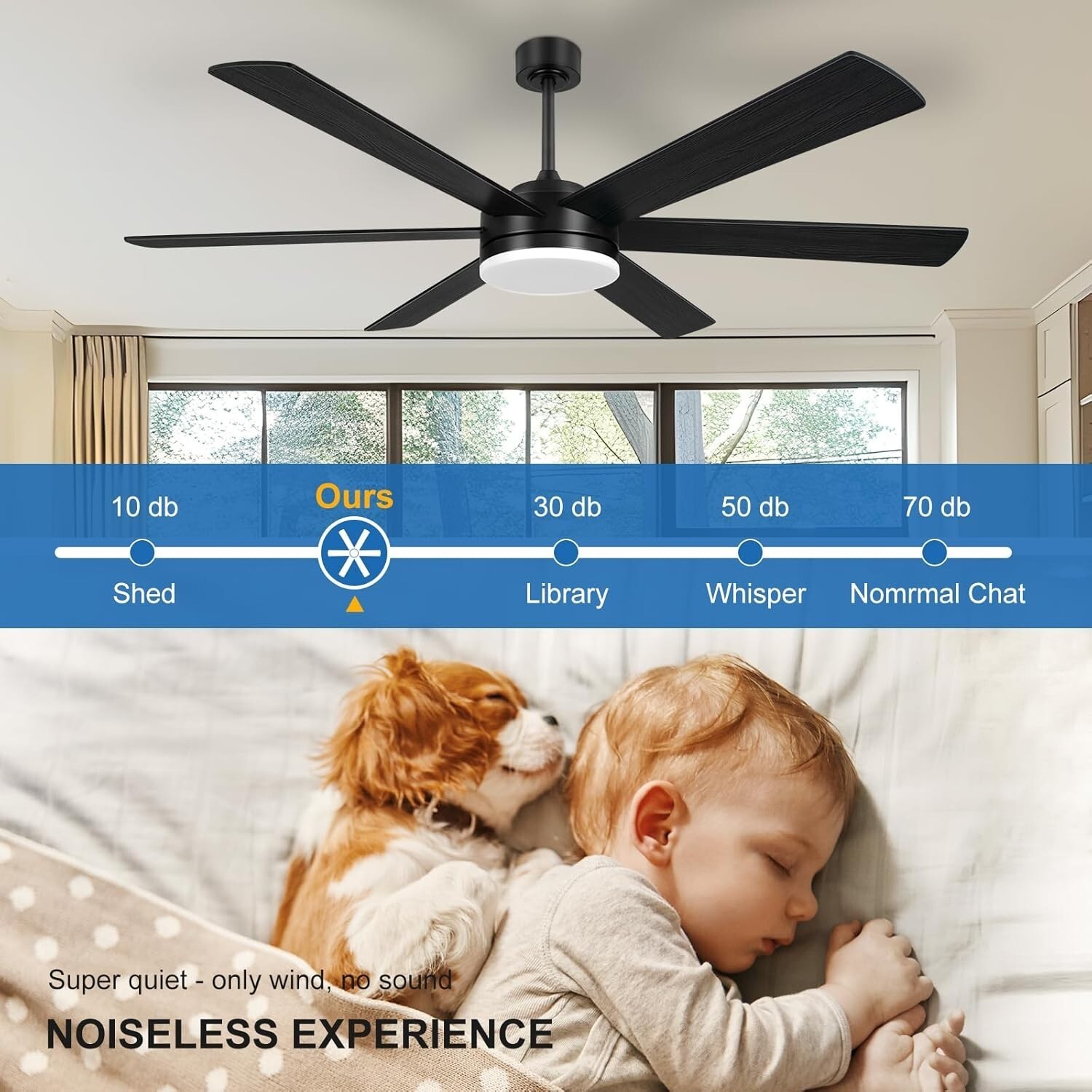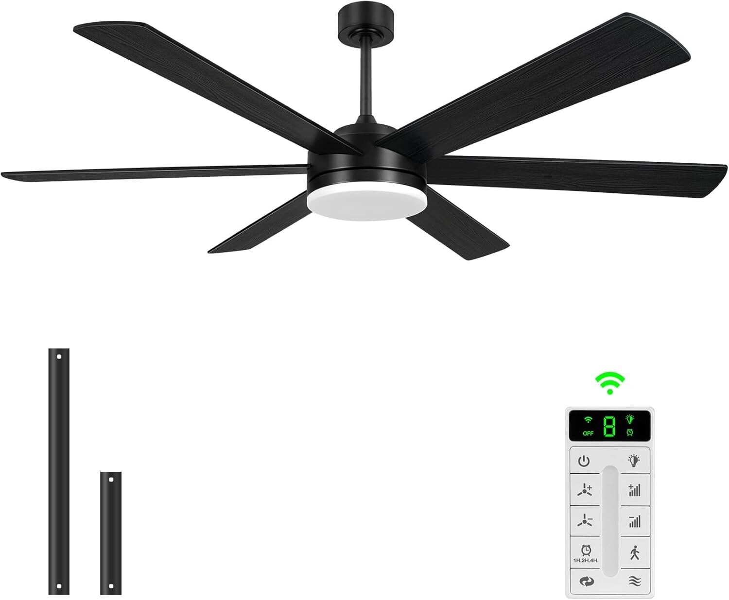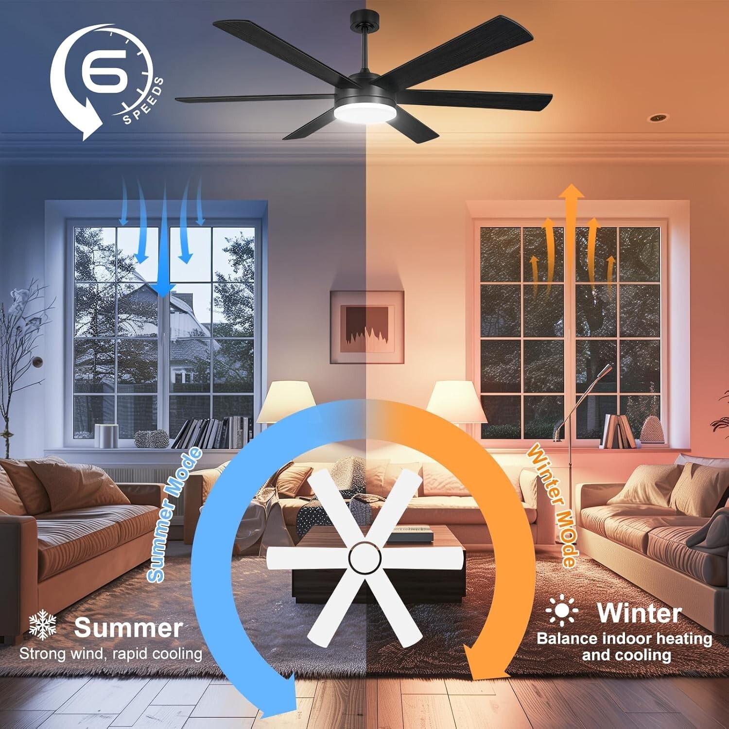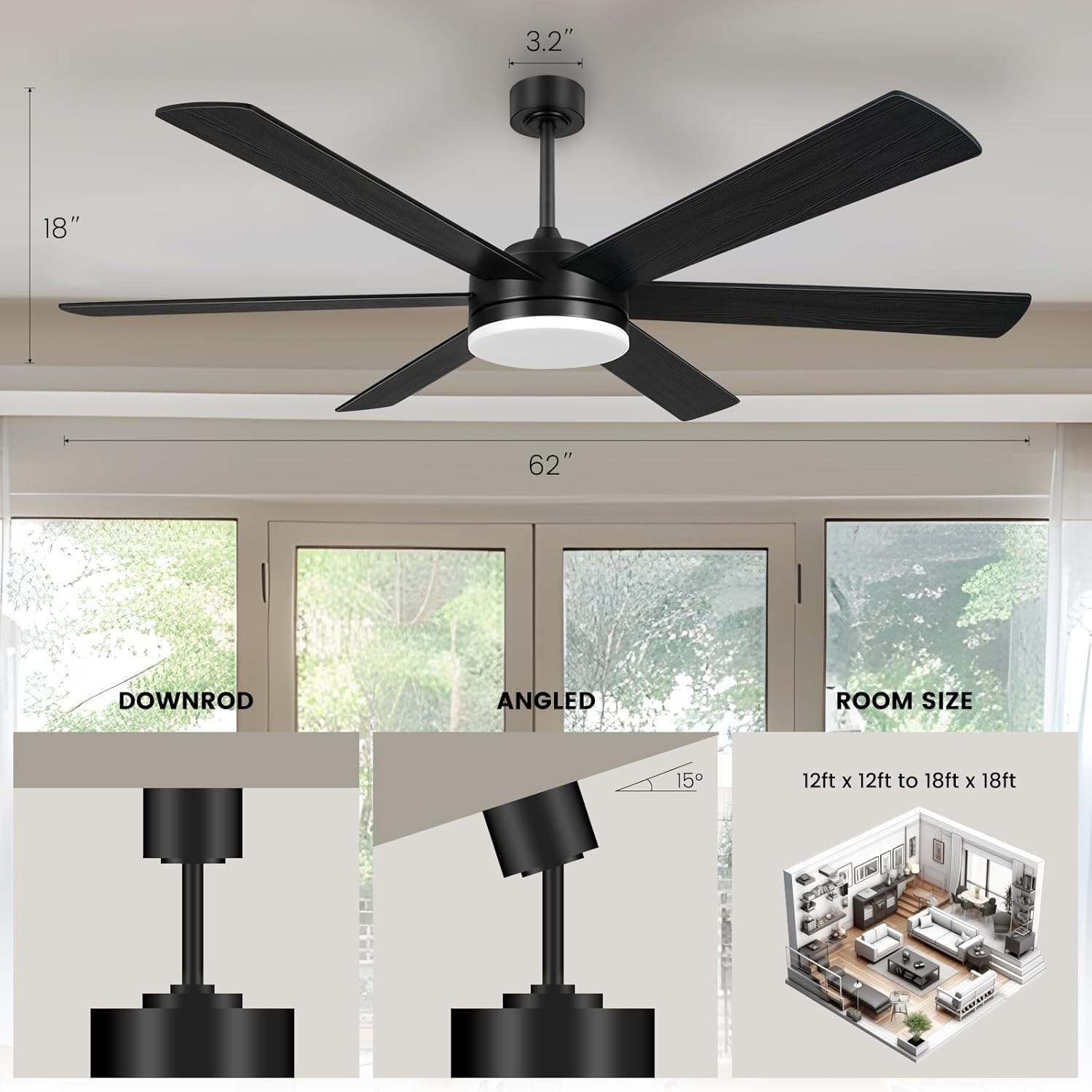 KOWNPY 62" Black Ceiling Fans with Lights and Remote Control-6 Speed Noiseless
