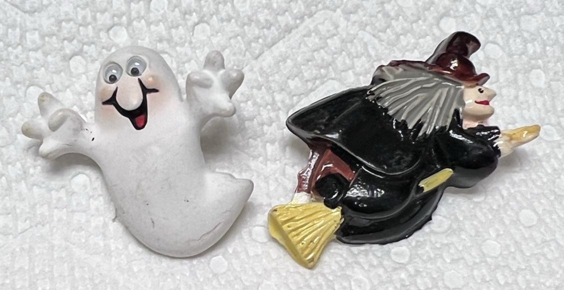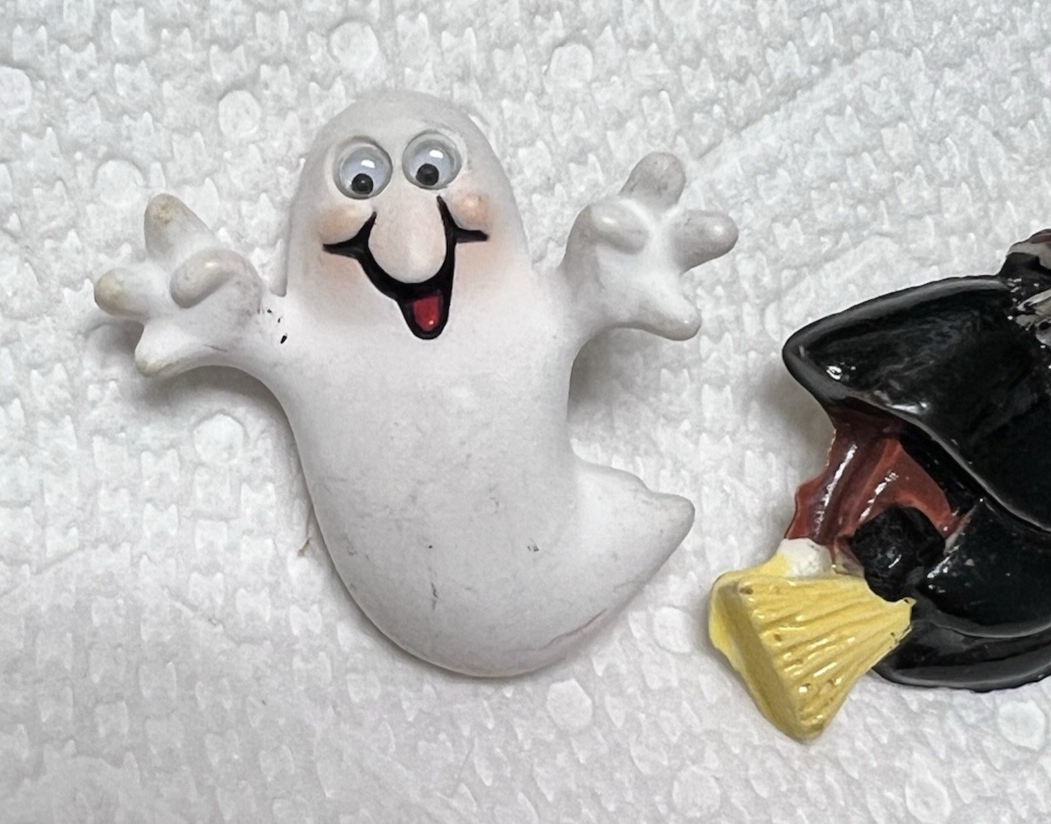 2 1980s Halloween Brooches Witch on Broomstick and Ghost Has Wiggly Eyes