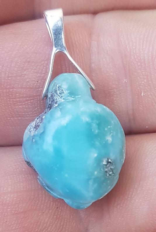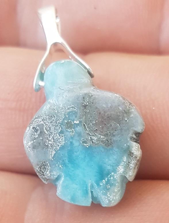 great larimar handcarved TURTLE 925 sterling silver Gemstone pendant (wil-38)