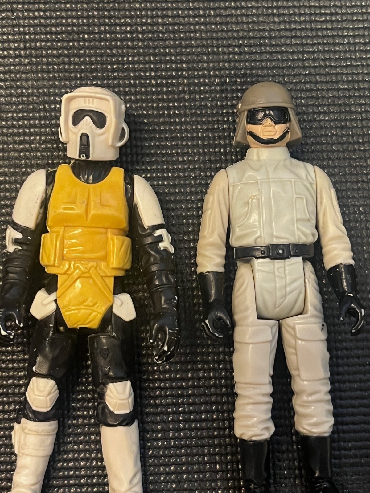 These items are pre-owned and have normal wear. The 4-LOM does have black spots on its back and the Biker Scout's vest is yellow. No accessories, no weapons, no box, loose. Please see photos for what you see is what you will receive.