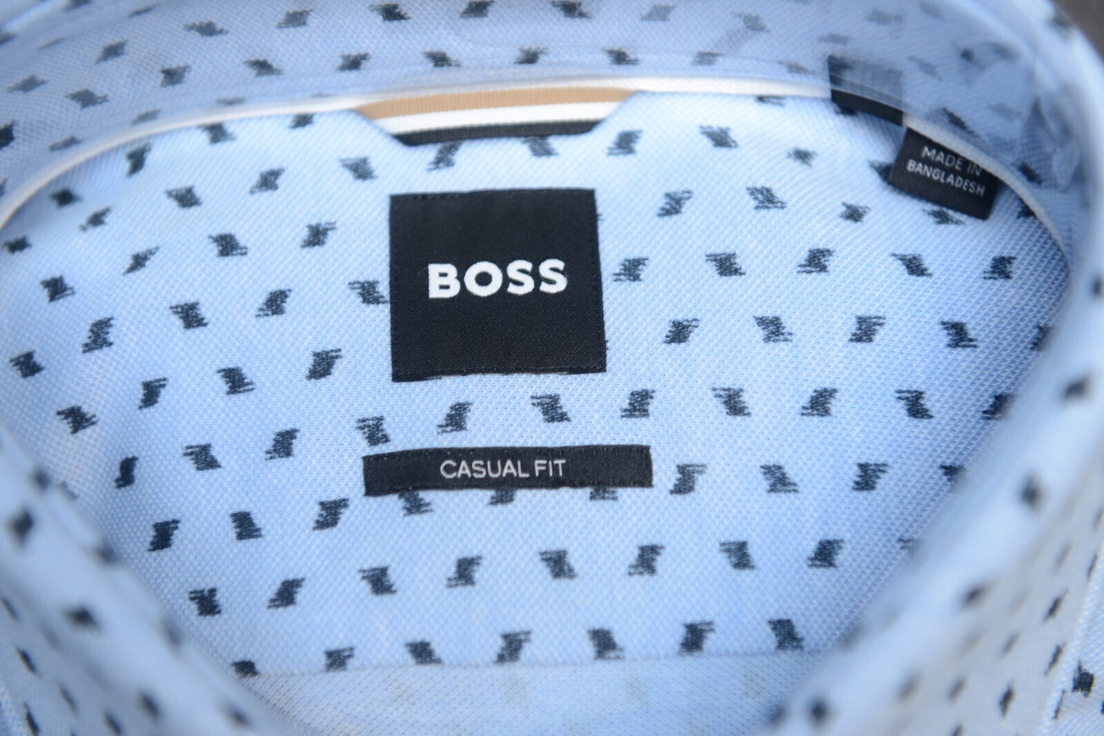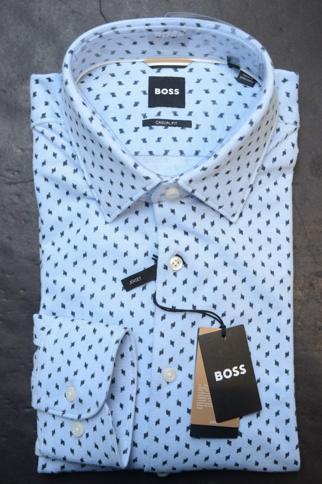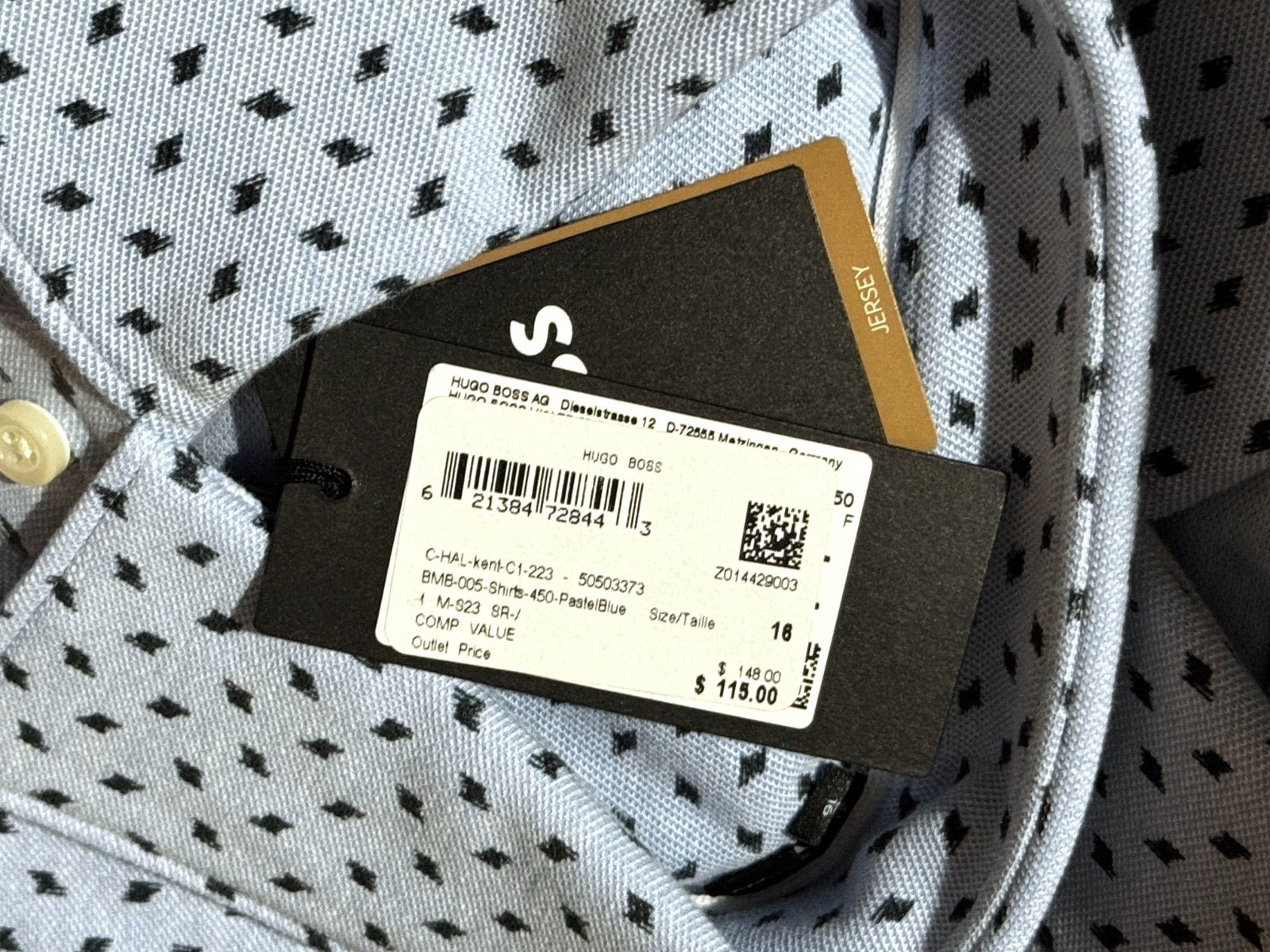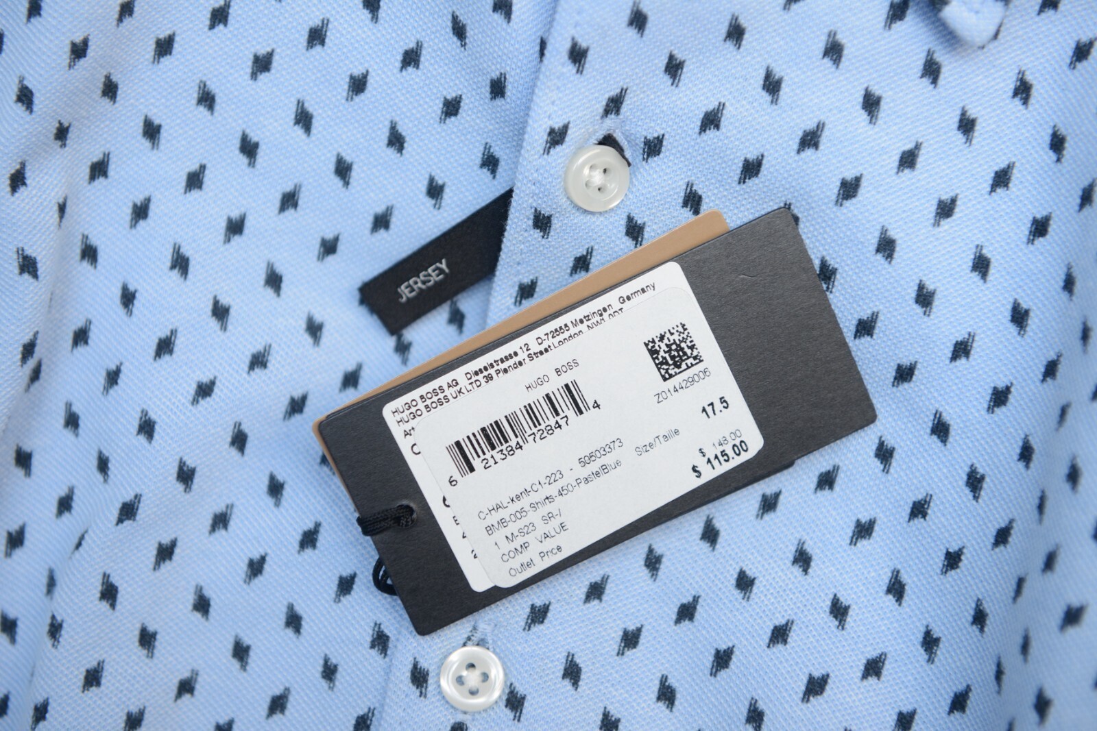 NWT Hugo Boss Hal Kent Casual Fit Pastel Azul manchado Jersey Camisa de vestir de algodon
