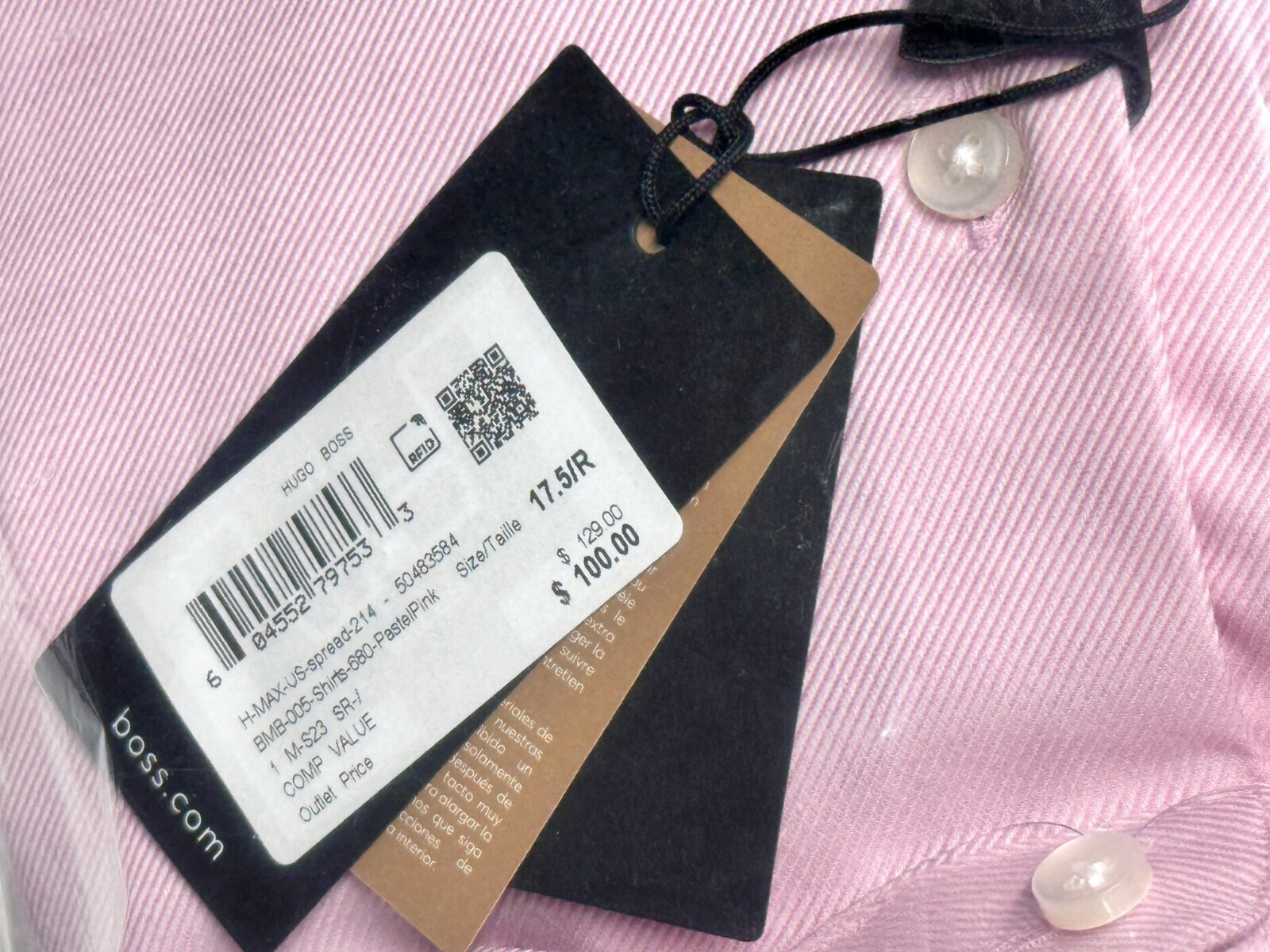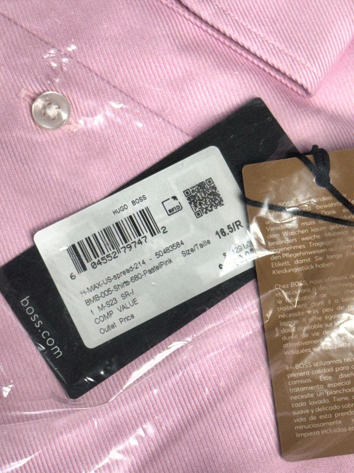 NWT Hugo Boss Max Extiando facil Iron Fit Pastel Pink Stretch Algodon Camisa de vestir de algodon