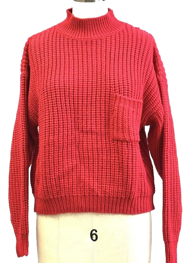 VTG 80s Red Cropped Sweater Radishes Roses Chunky Knit Korea Womens M Acrylic