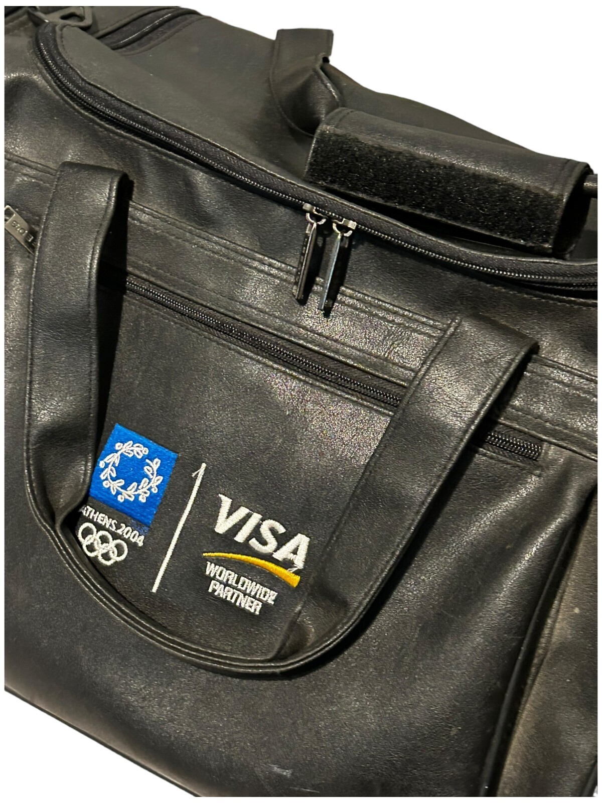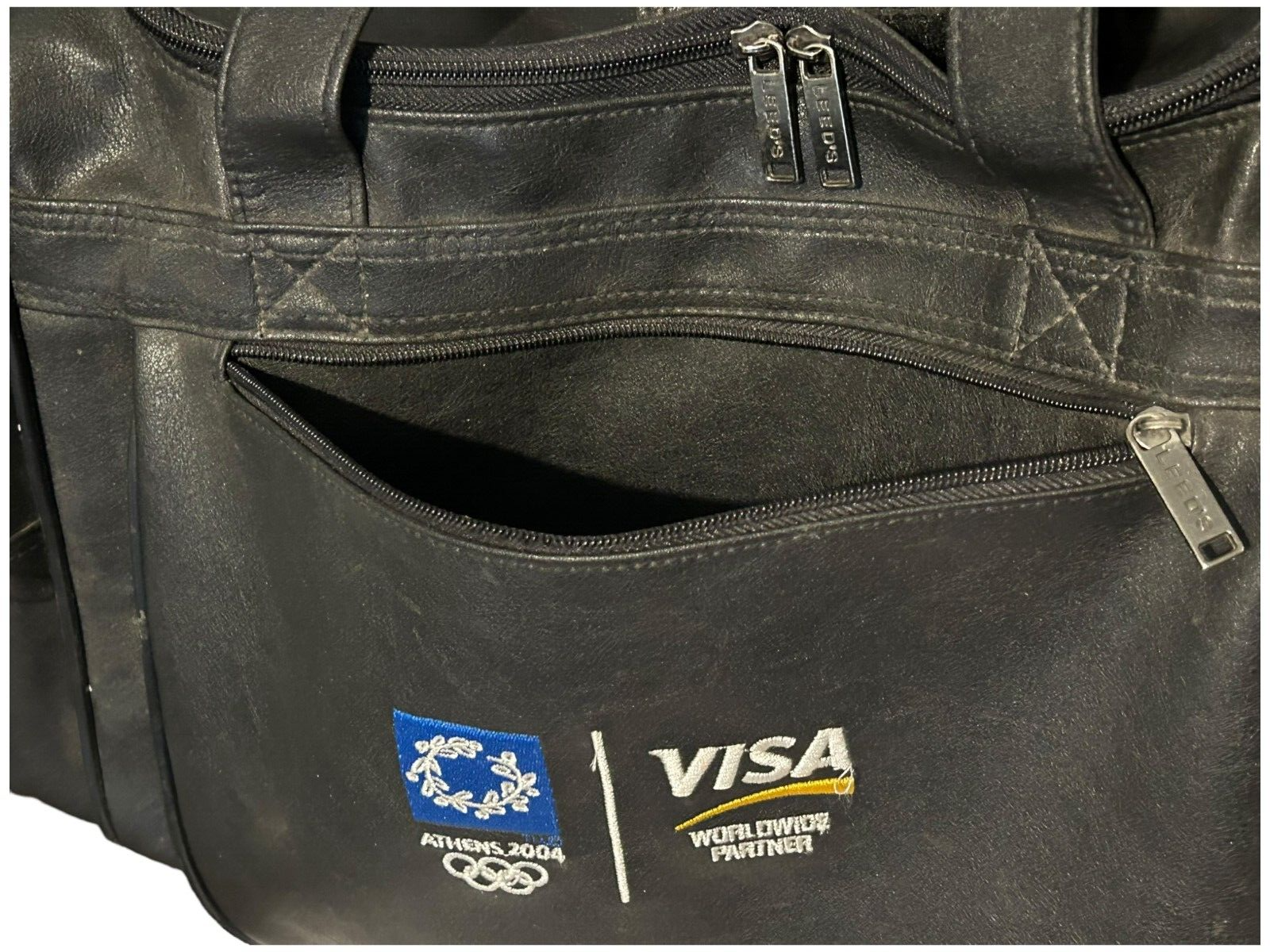 athens 2004 olympics visa black leather duffle bag by Leeds RARE EUC