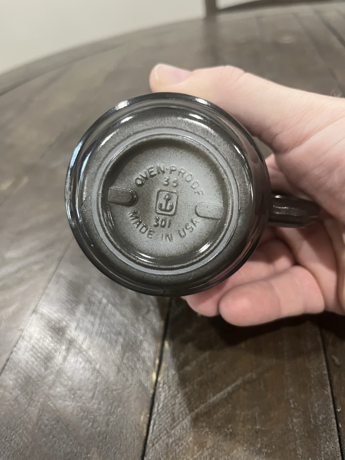 Add a touch of vintage charm to your morning routine with this Anchor Hocking Fire King mug. Crafted from durable milk glass and fused with a classic retro design, this 12 oz mug is perfect for enjoying your favorite hot beverage. Its solid black color and timeless style make it a versatile addition to any kitchen or collection. Whether you're a coffee lover or a tea enthusiast, this mug is sure to impress.