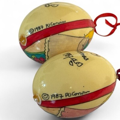 Vintage Hand Painted Signed PJ Corwin 1987 Real Egg Christmas Ornaments Santa