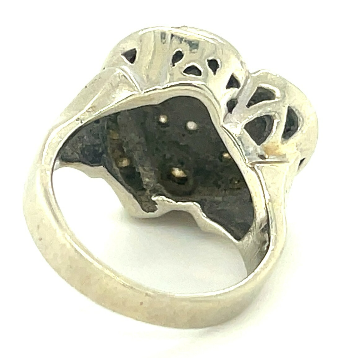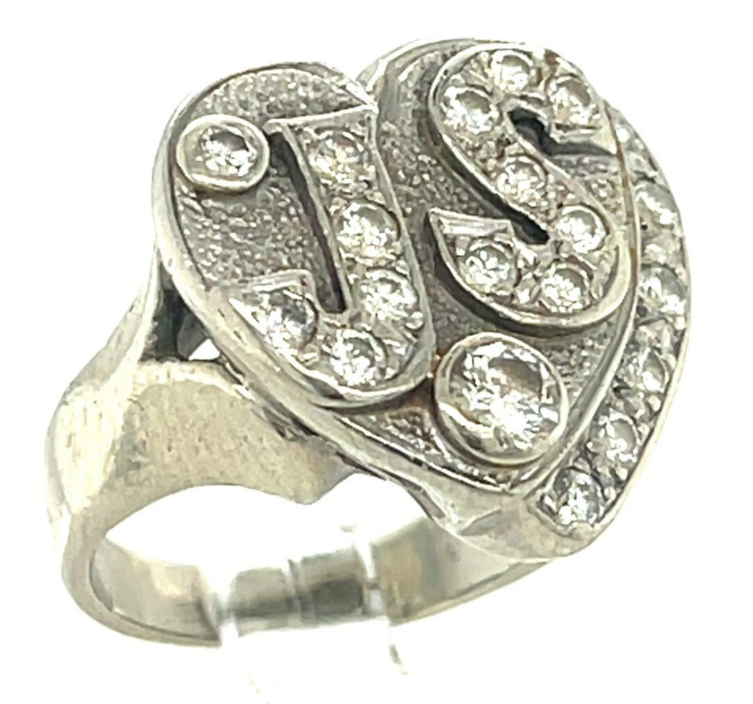 14k White Gold "JS" Diamond Heart Plaque Ring Size 3.75 Vintage Gorgeous