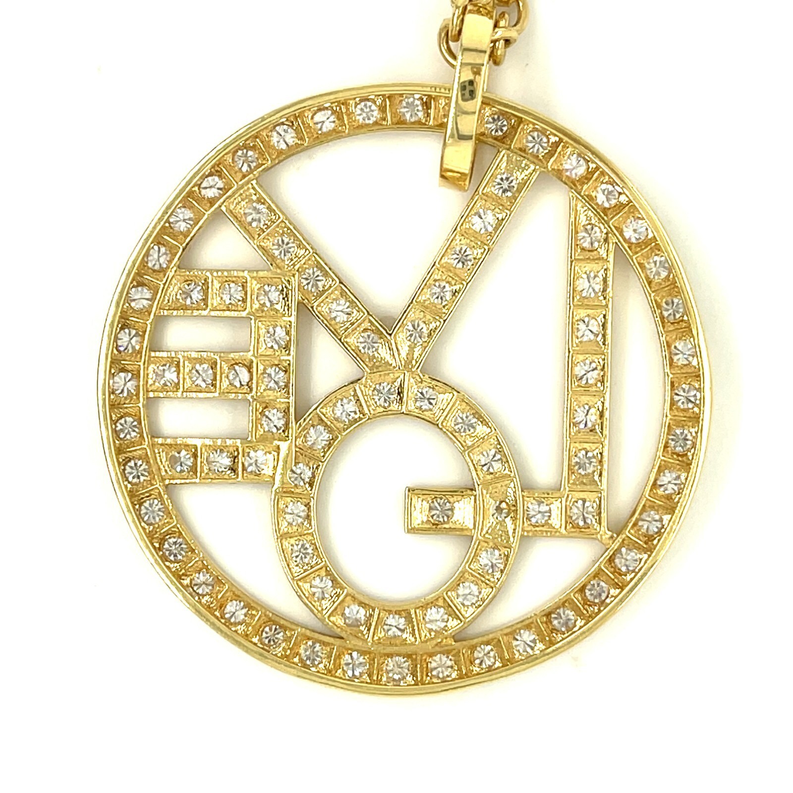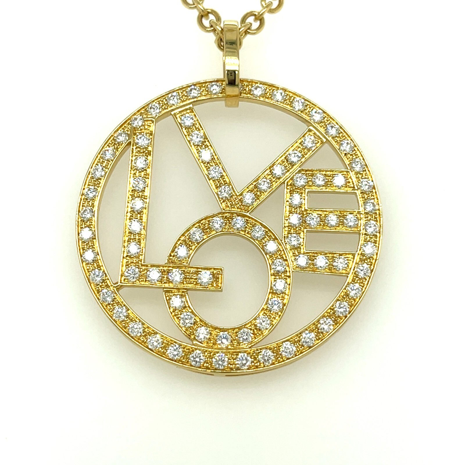 18k Yellow Gold LOVE Disk Pendant w/ Appx 6.96 ct Diamonds 34"