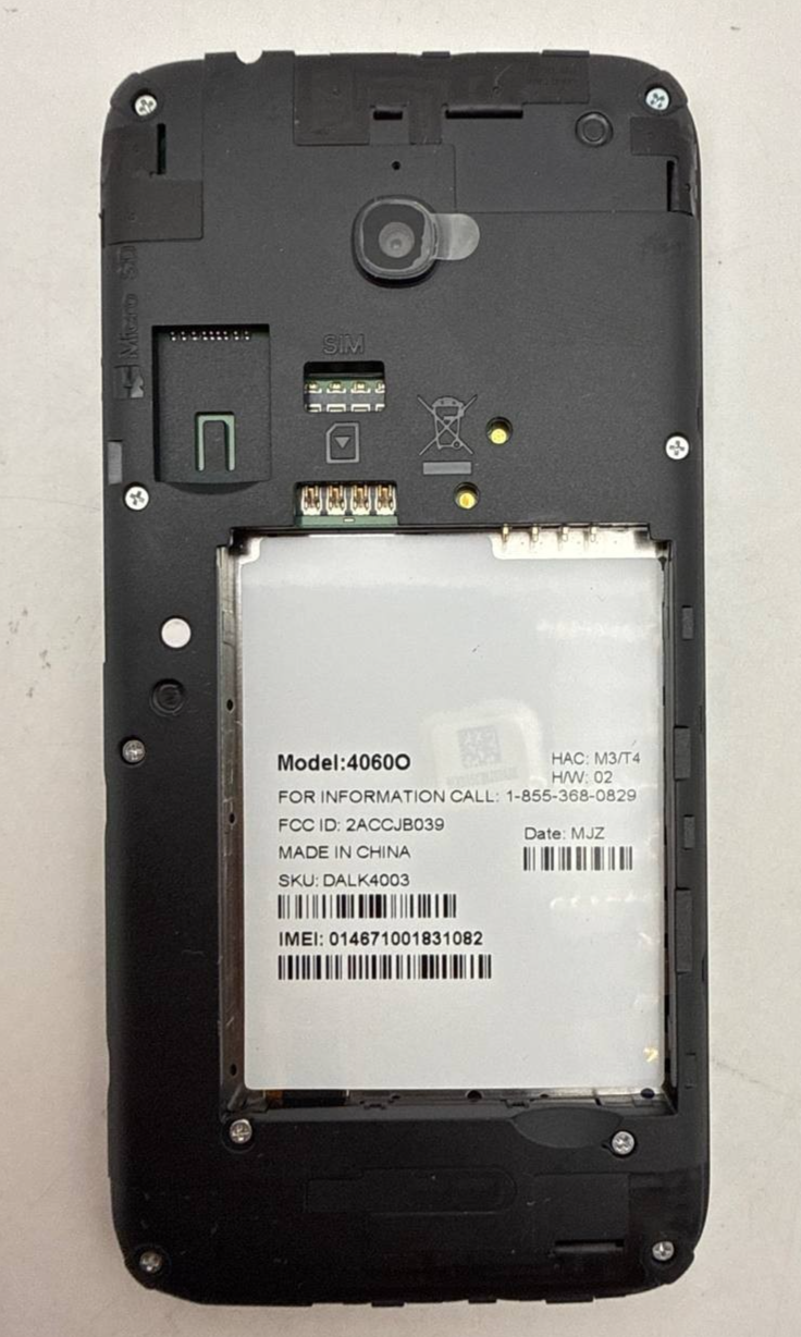 Item includes: Please note: This item includes 1x Alcatel Ideal 4060A Smartphone Only ? As Pictured. No battery, no back cover, no charger, no cables, and no other accessories are included.