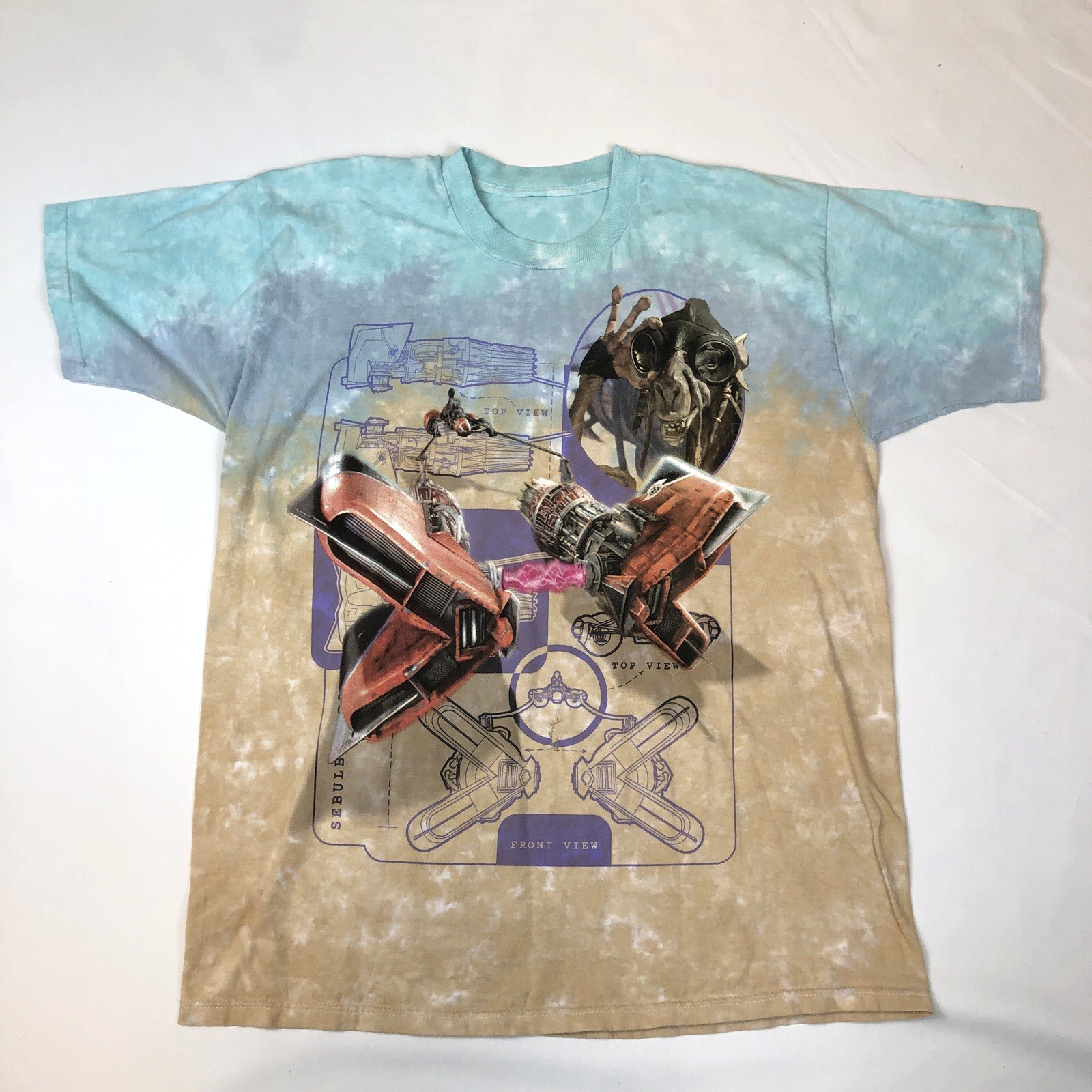 Vintage Liquid Blue Star Wars Sebulba Dug Pod Racer Tie Dye T-Shirt Cut Tag