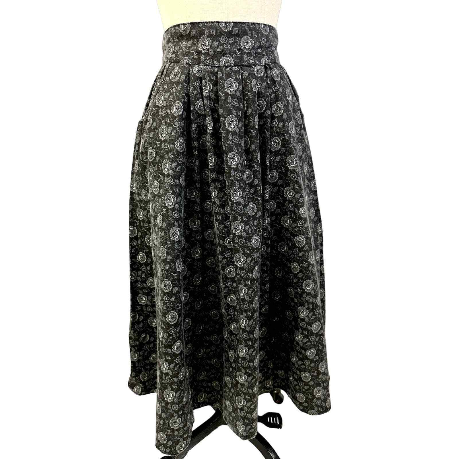 VTG Gunne Sax Jessica McClintock Gray Floral Print Midi Skirt Sz S NWOT