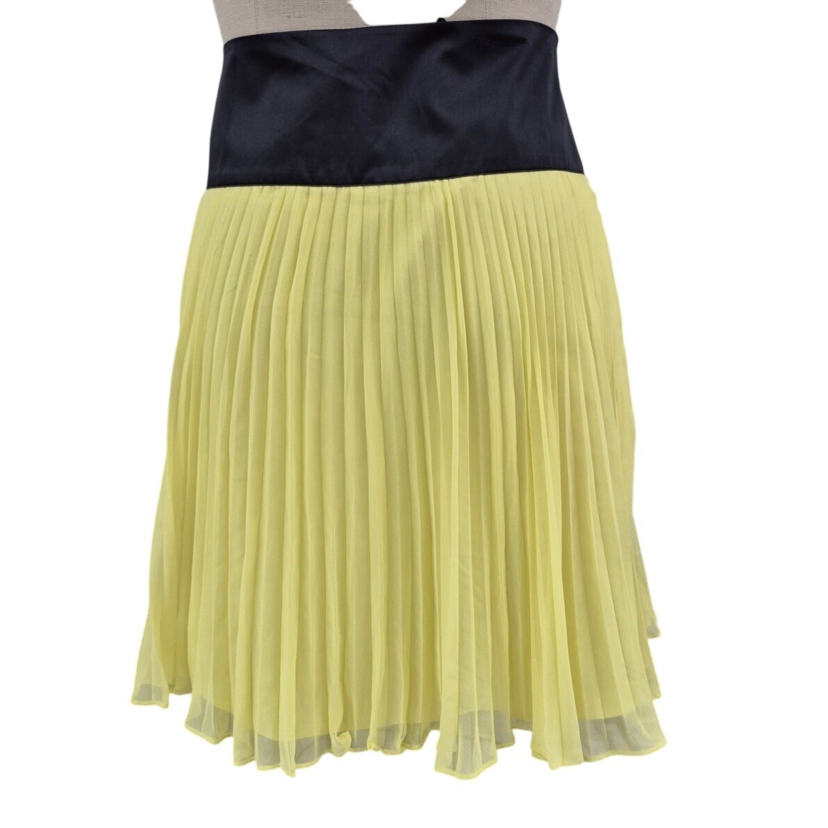 NWT The Limited 100% Polyester Yellow Pleated Skirt Lining Black Waistband Sz L