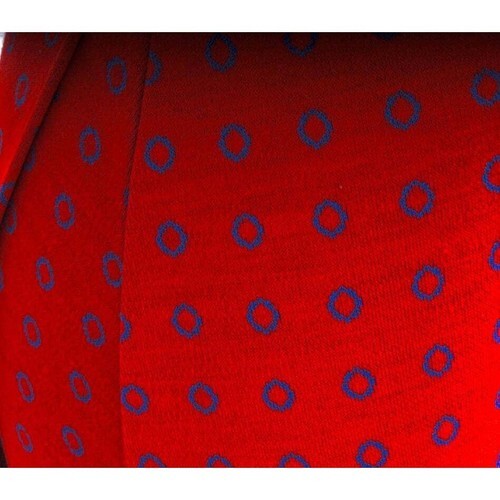Striking 1960s vintage Vuokko Nurmesniemi wool knit maxi skirt, designed with a bold bright blue circle motif on a vivid red ground. A-line silhouette with a wrap fit that allows slight adjustability at the waist.