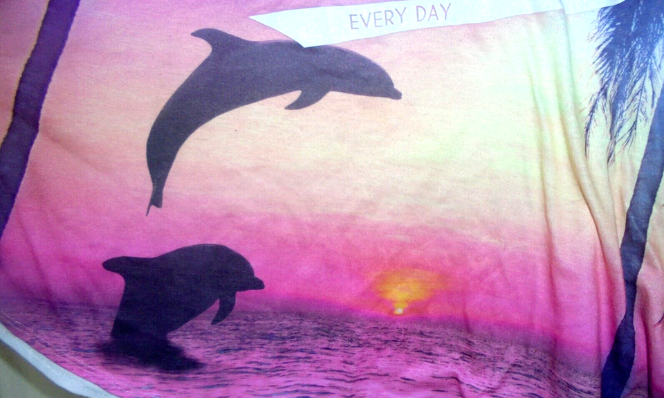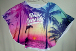 H M Womens 14Y Girls Top "I Want Neon Sunsets Every Day" Sparkly Dolphins