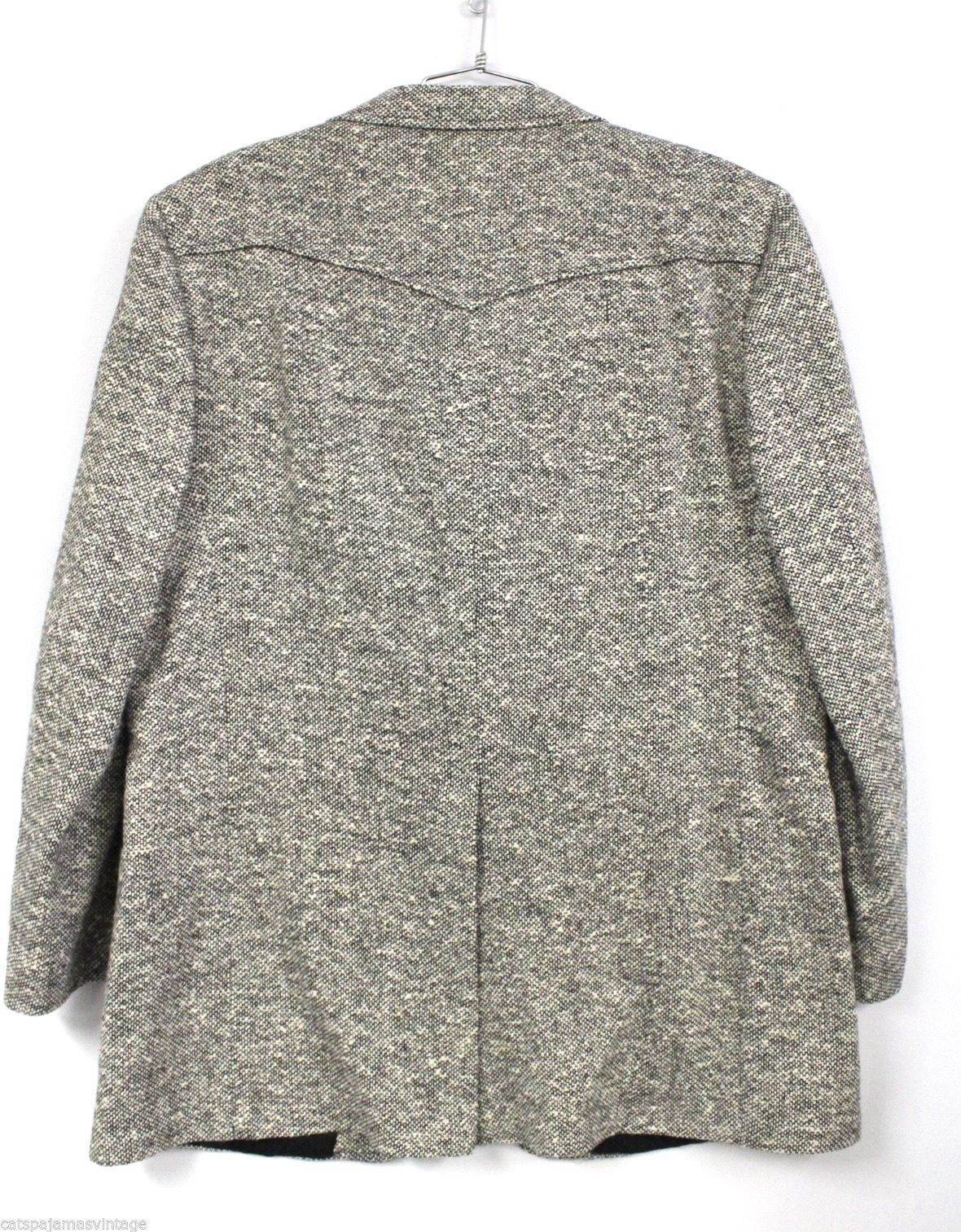 VTG 70s Al Rivera Embarcadero Western Blazer 44R Tweed Wool Salt Pepper Sport