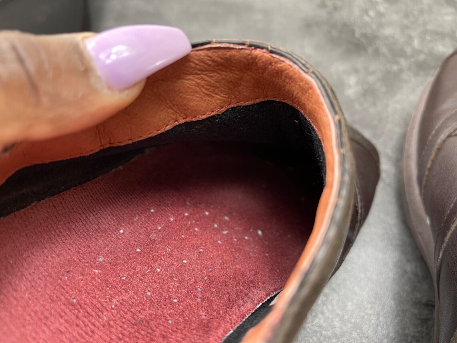 Note : Being a used item, there are signs of prior use on it like a few body abrasions, a little fading, staining, heel wear, some insole/inside body staining/wear and an area of gum on the bottom sole but overall, they are still in really great condition.