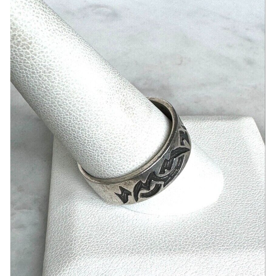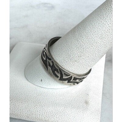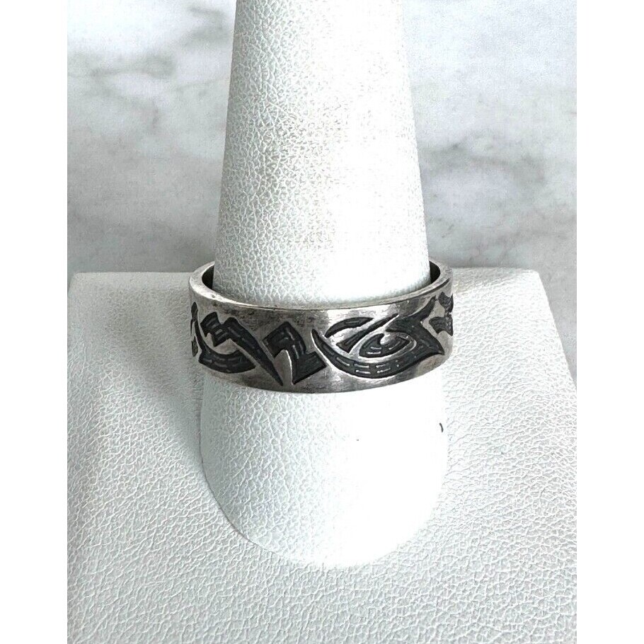 Mens 925 Sterling Silver Abstract Engraving Band Ring Size 11.75 Sky