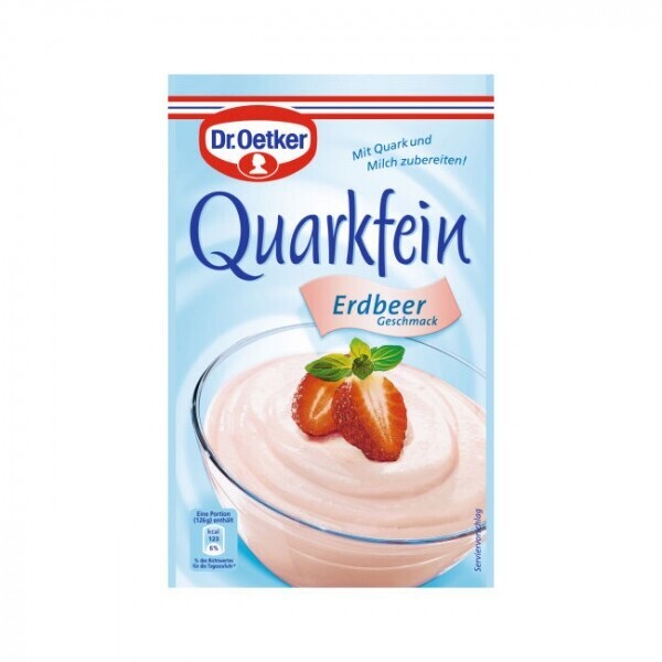 Quark with Dr. tastes pleasantly fruity. Oetker Quarkfein strawberry flavor. You can also easily conjure up a milk mixed drink with it. Try this irresistible pleasure. With Dr. Oetker Quarkfein strawberry flavor and milk turns quark into a creamy and enjoyable curd dessert. Dr. Oetker Quarkfein refines the consistency and gives quark its special taste.