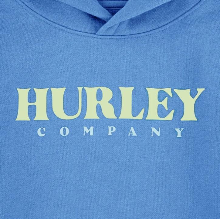 Hurley Boys Girls Hoodie Blue Pullover Kangaroo Pocket Hood Graphic Fleece