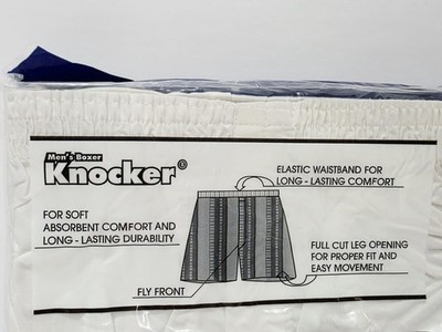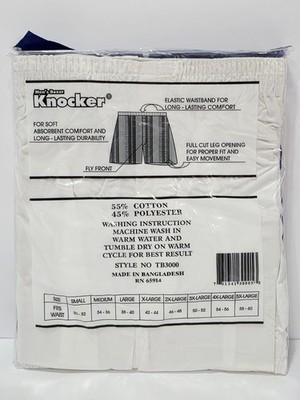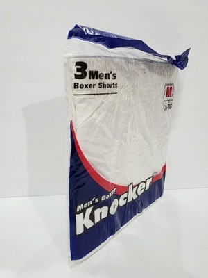 1 Brand New Factory Sealed In Original Packaging Full Size by Knocker 3-Pack Men's Model #TB3000 White Boxer Shorts Size Medium (34-36) For Soft Absorbent Comfort and Long-Lasting Durability! Fly Front! Elastic Waistband for Long-Lasting Comfort! Full Cut Leg Opening for Proper Fit and Easy Movement! 55% Cotton 45% Polyester! Original Formula! Discontinued Hard to Find! RARE! 100% Authentic!