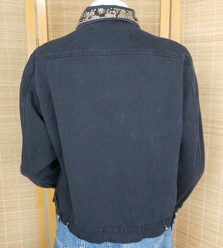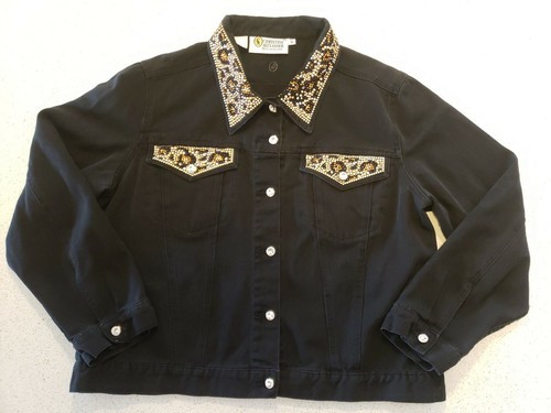 Christine Alexander Rhinestone Jacket Womens L Black Swarovski Studded Leopard