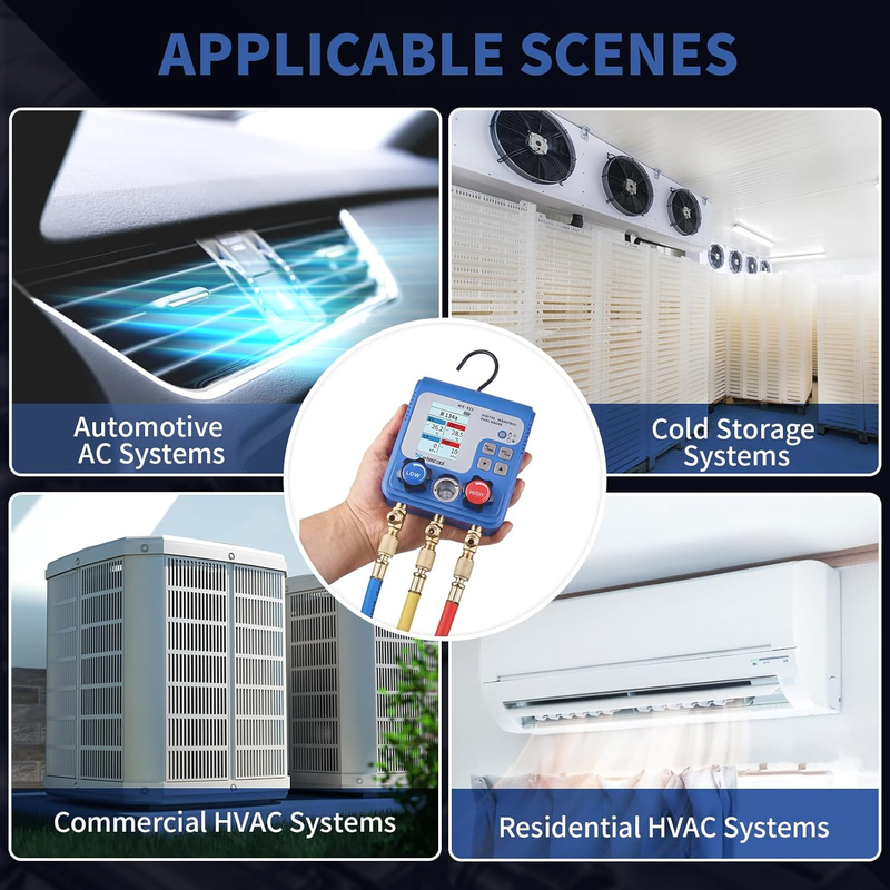 [FAST LEAK DETECTION SINGLE-GAUGE EFFICIENCY]?Dedicated single-test leak detection mode quickly identifies refrigerant leaks. Includes the normal types like R123/R1234yf/R134A/R14/R141B/R142B/R22/R23/R290/R32/R404A/R407C/R410A/R507/R508B. Compact design streamlines workflows for HVAC technicians and auto repair experts.