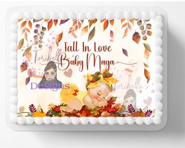 Fall In Love Blonde Baby Shower Themed Edible Image Birthday Cake Topper, Frosti