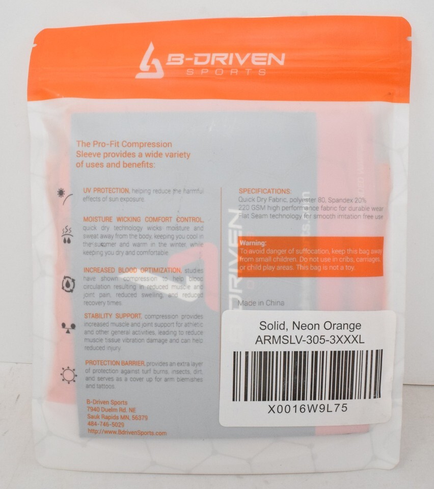 B Driven Sports Compression Arm Sleeve Orange 3XL