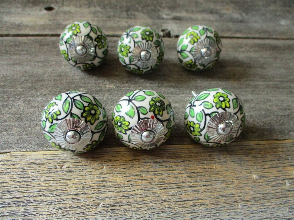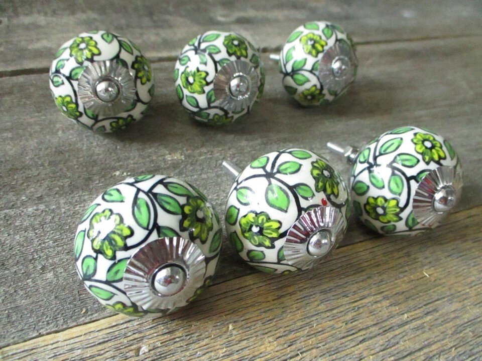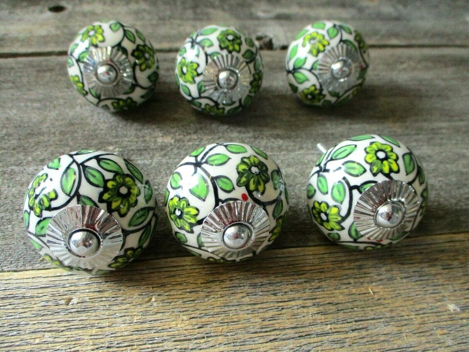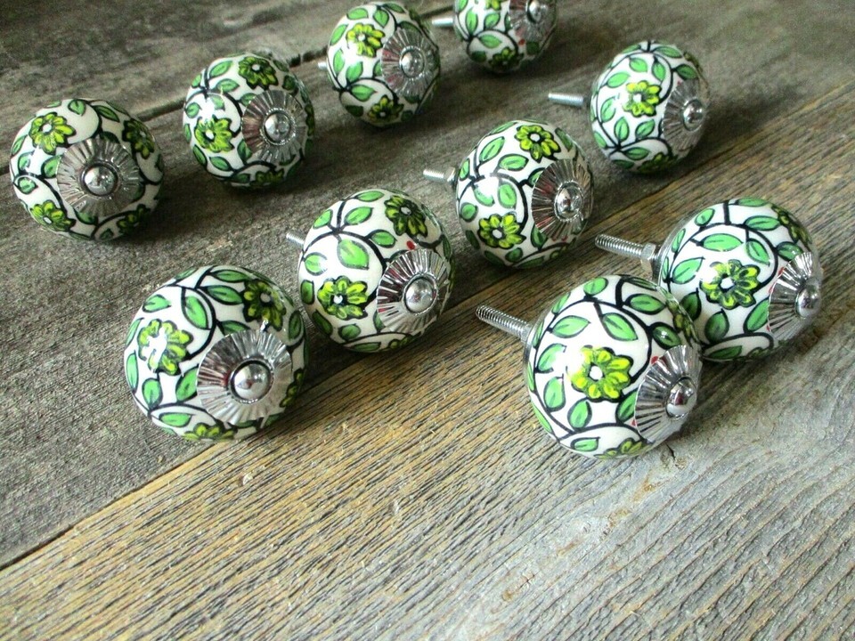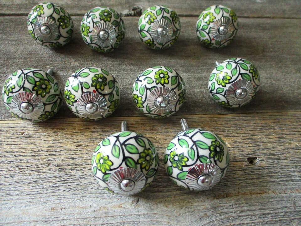 10 Painted Ceramic Drawer Leaf Knobs Pulls Handle Cabinet Dresser Hardware Round