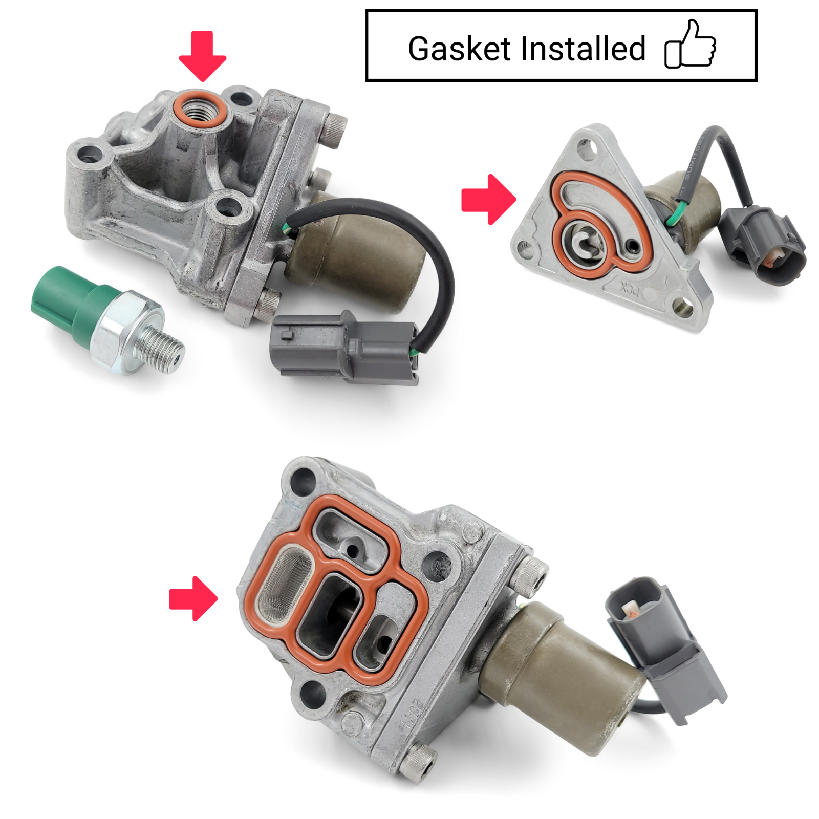 This VTEC solenoid gasket kit will replace all 3 seals in the valve, includes the gasket with the filter, upper gasket and the pressure switch O-ring. Made with the highest quality material to resist oil and high temp.