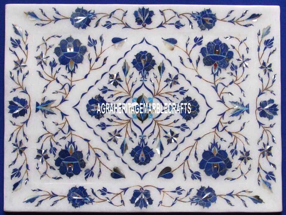 12"x8'' White Marble Inlay Tray with Lapis and 50 similar items