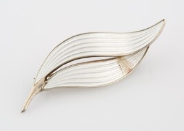 Aksel Holmsen Blanc Émail Feuille Broche Argent Sterling Fait En Norvège Vintage