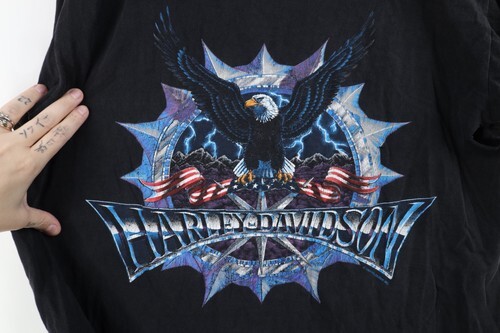 Vtg 90s Harley Davidson Mens Medium Thrashed Eagle Lightning T-Shirt Black USA
