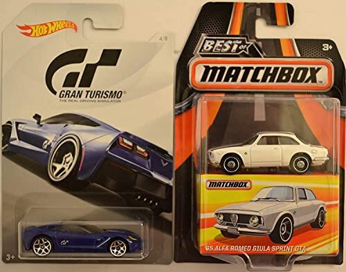 Hot Wheels 2 Cars Bundle '14 Corvette Stingray Gran Turismo Series MBX '65 Alfa Romeo Giula Sprint GTA Best of Matchbox Series 1:64 Scale Collectible Die Cast Model Car