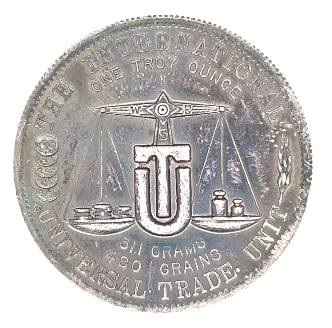 1974 Internacional Universal Comercio Unidad 1 Oz. Plateado Arte Redondo Nicely