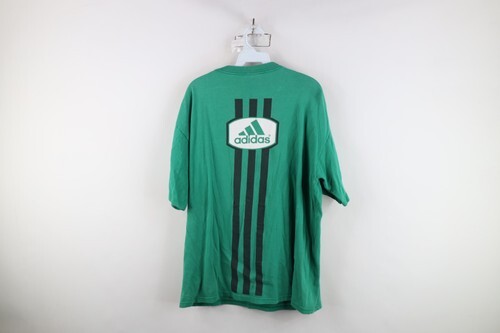 Vintage 90s Adidas Mens Large Distressed Spell Out Big Logo T-Shirt Green USA