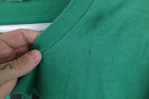 Holes left armpit, front, collar. Blemishes/dark spots front, back. Collar, arms discolored. Graphics cracking/faded. Color faded. Pilling. Made in USA