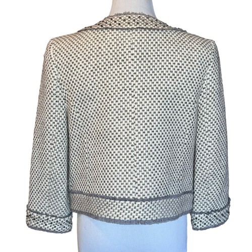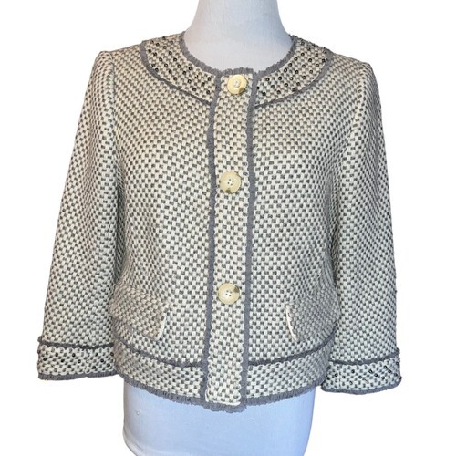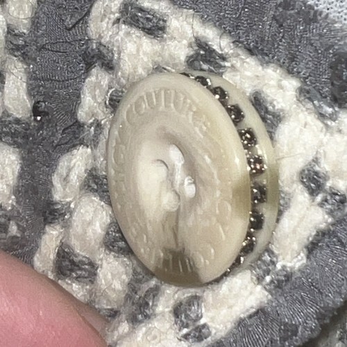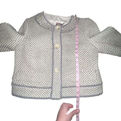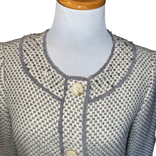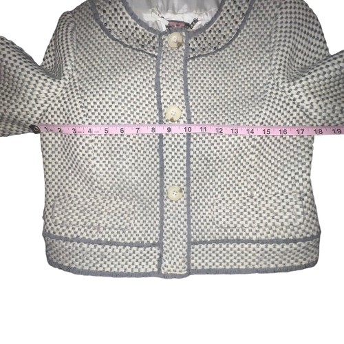 JUICY COUTURE WOMEN WOOL BLEND GRAY WHITE TWEED BLACK CRYSTAL BUTTON BLAZER MED