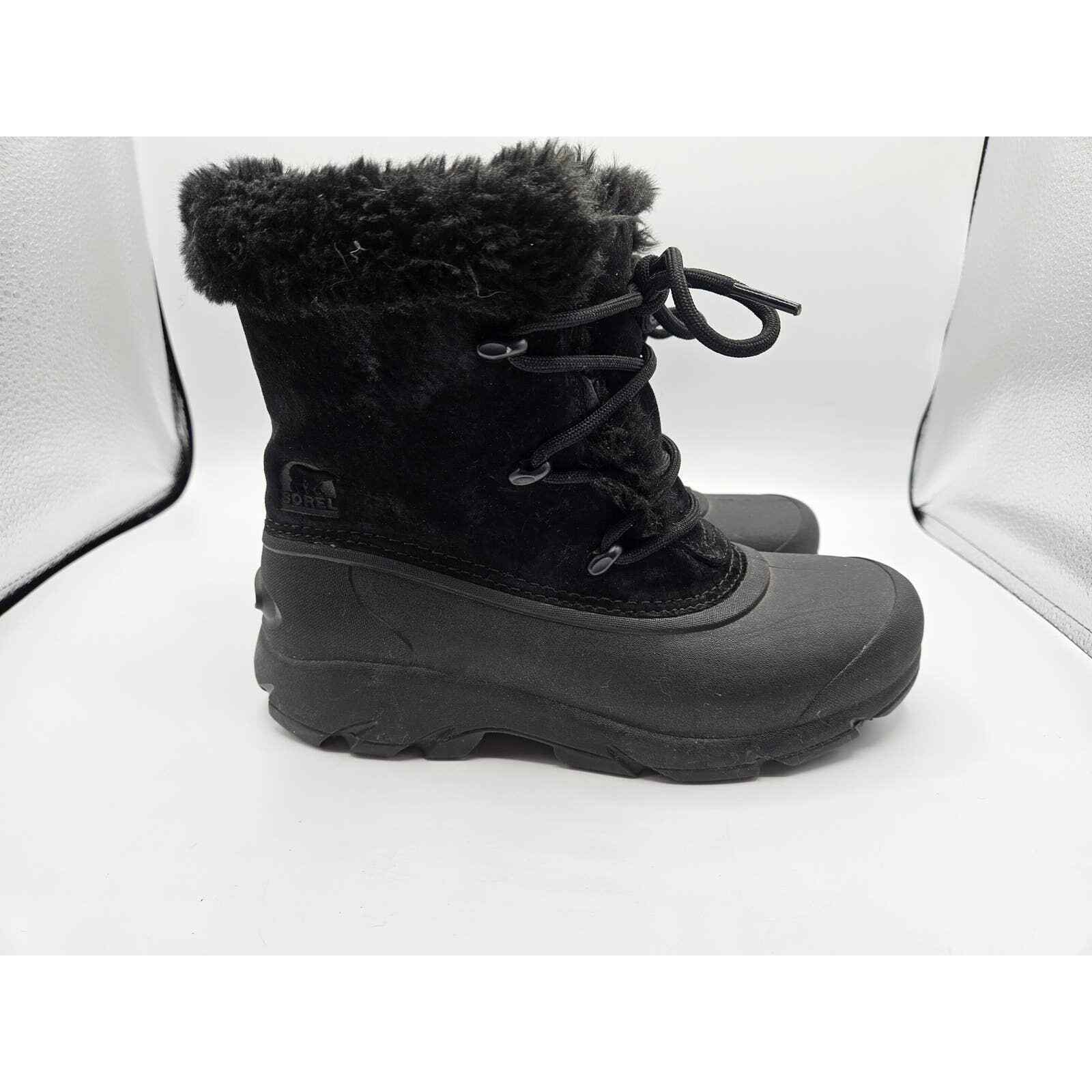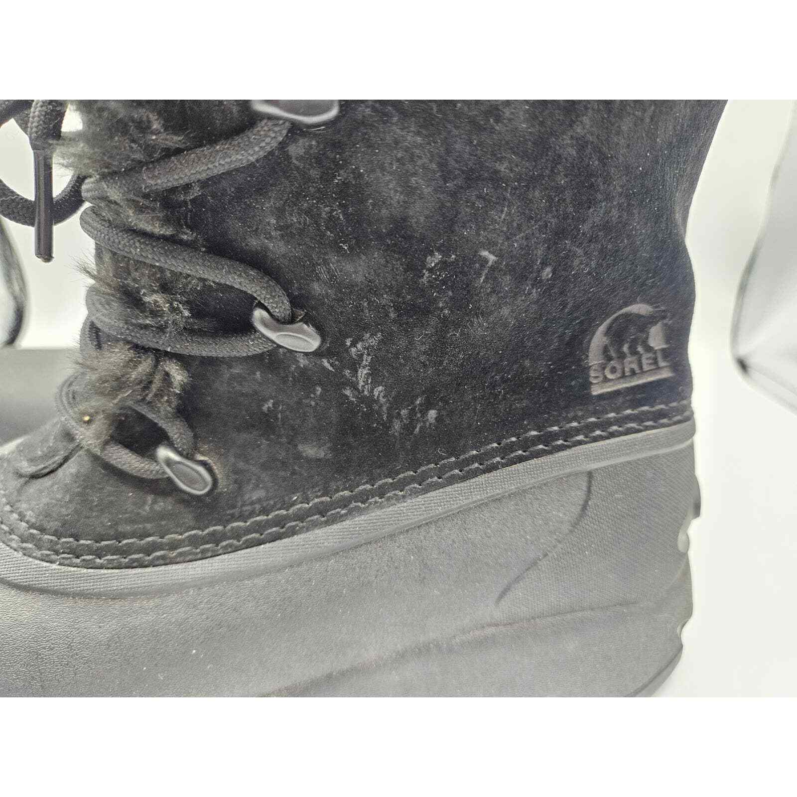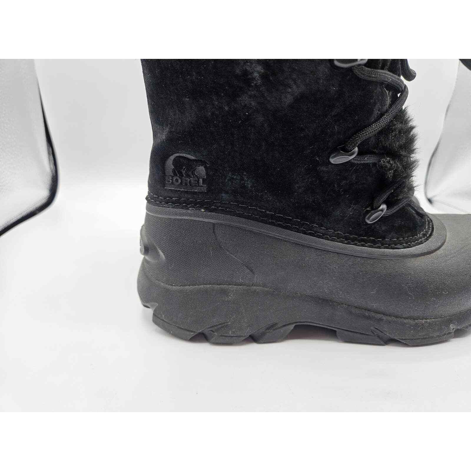 Sorel Black Suede Snow Angel Winter Snow Boots Size 6 Lace Up Waterproof