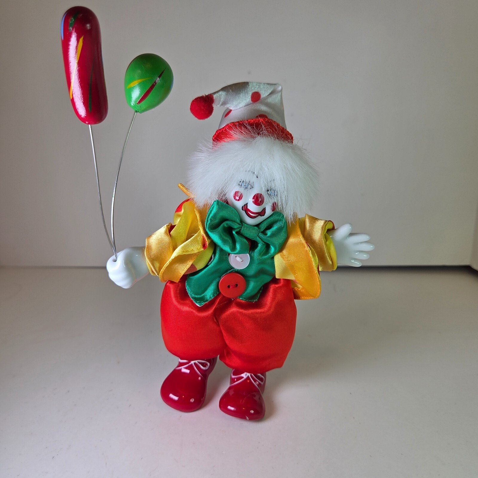 Vintage Clown Holding Balloons Figurine 7-8" Porcelain Head/Hands/Feet