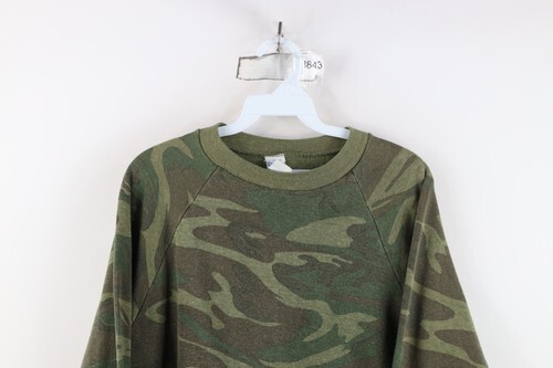 Vintage 60s 70s Healthknit Mens Large Faded Camouflage Crewneck Sweatshirt USA