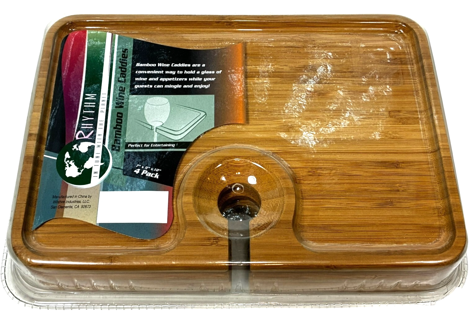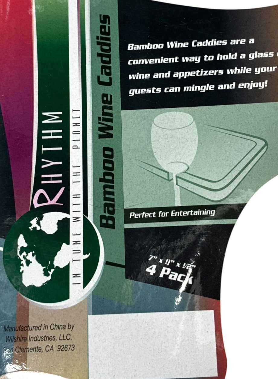 4 pack Bamboo Wine Glass Caddies Trays 7" x 9" x 1/2" - new
