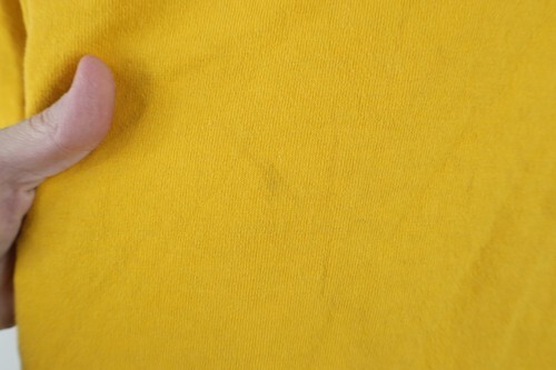 Vintage Y2K Champion Mens Large Faded Big Logo Patch Cotton Knit T-Shirt Yellow added to cart.