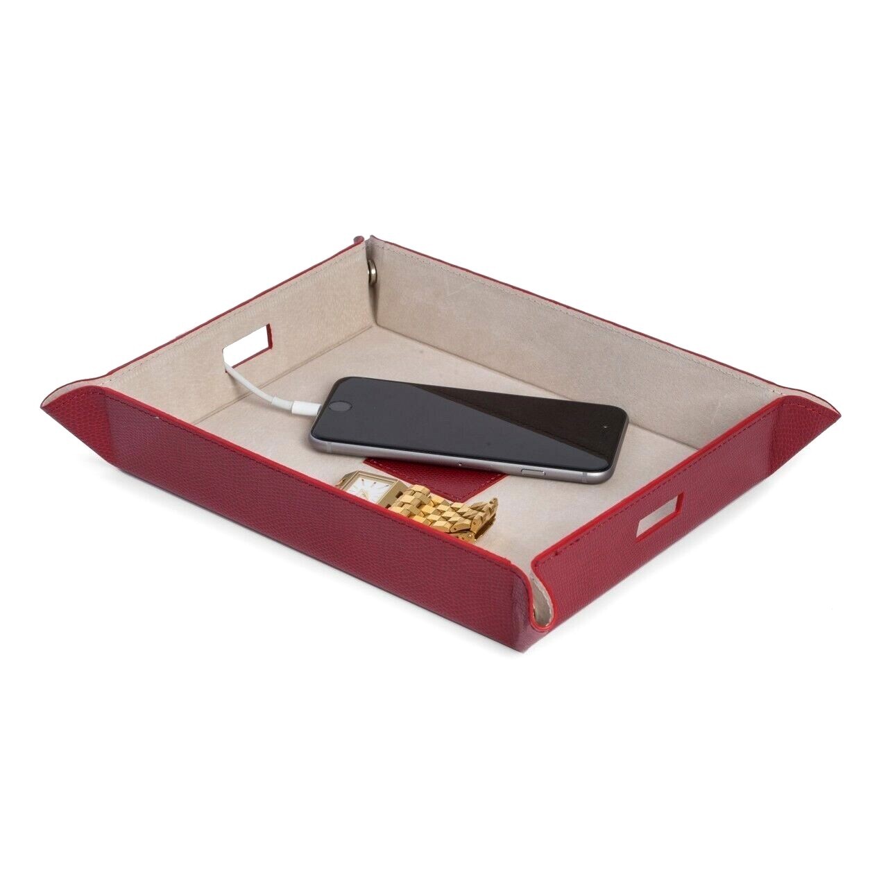 Bey Berk Large Leather Snap Valet and Charging Station Tray Red