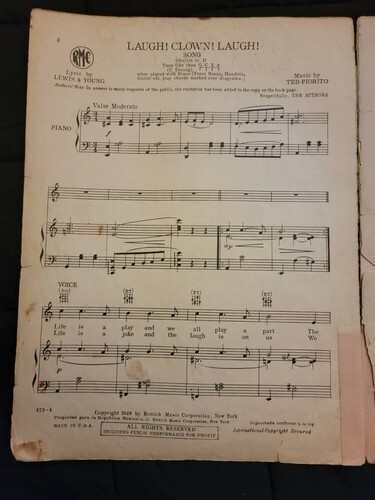 Vintage Sheet Music Laugh Clown Laugh Metro Goddwyn Mayer Production
