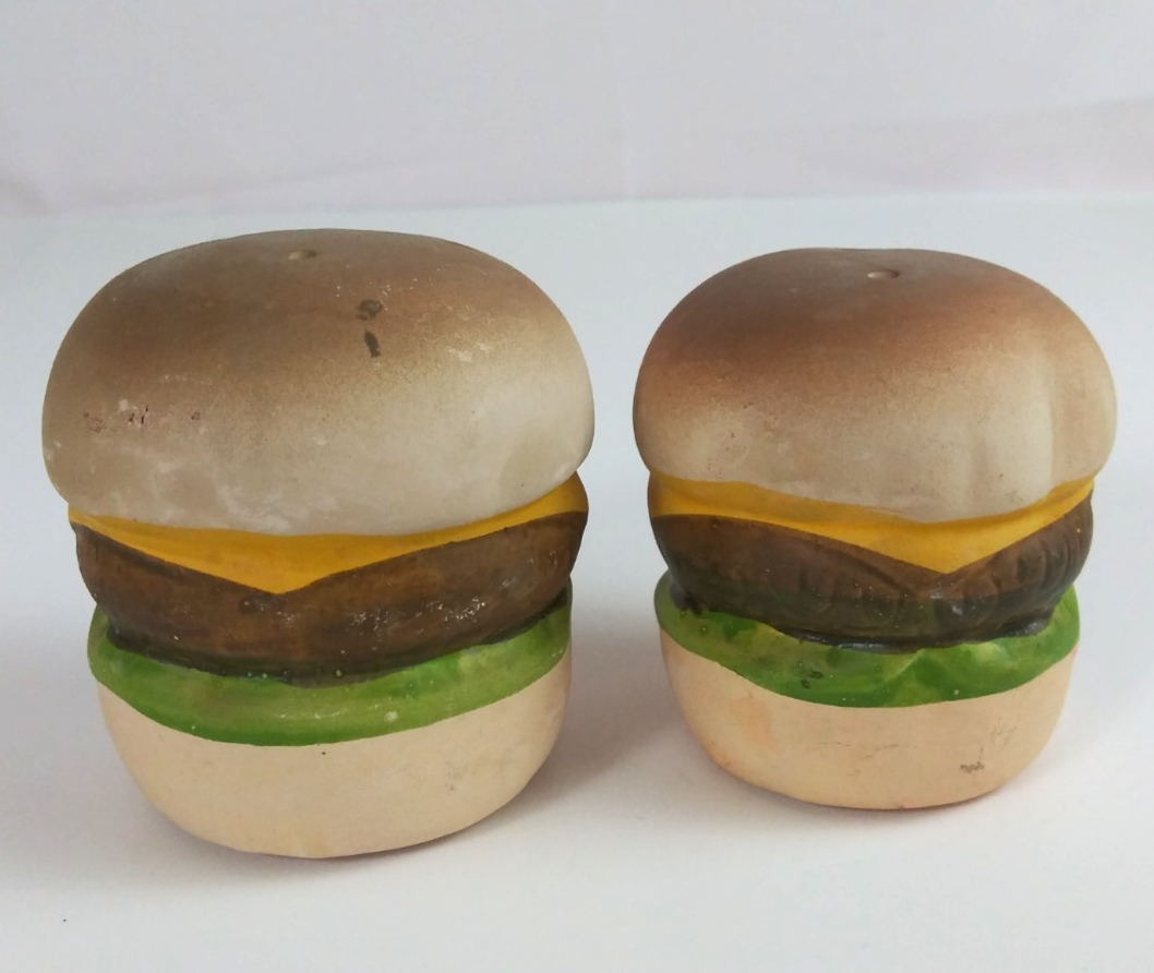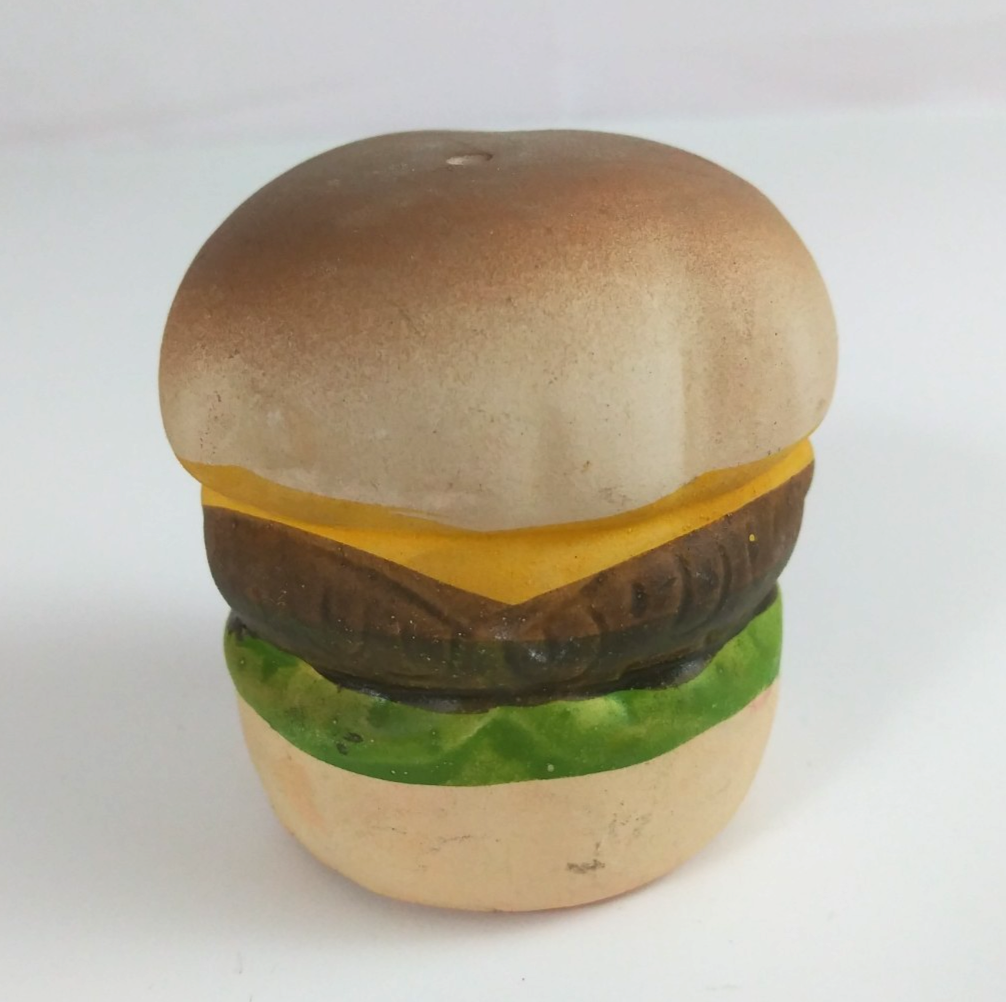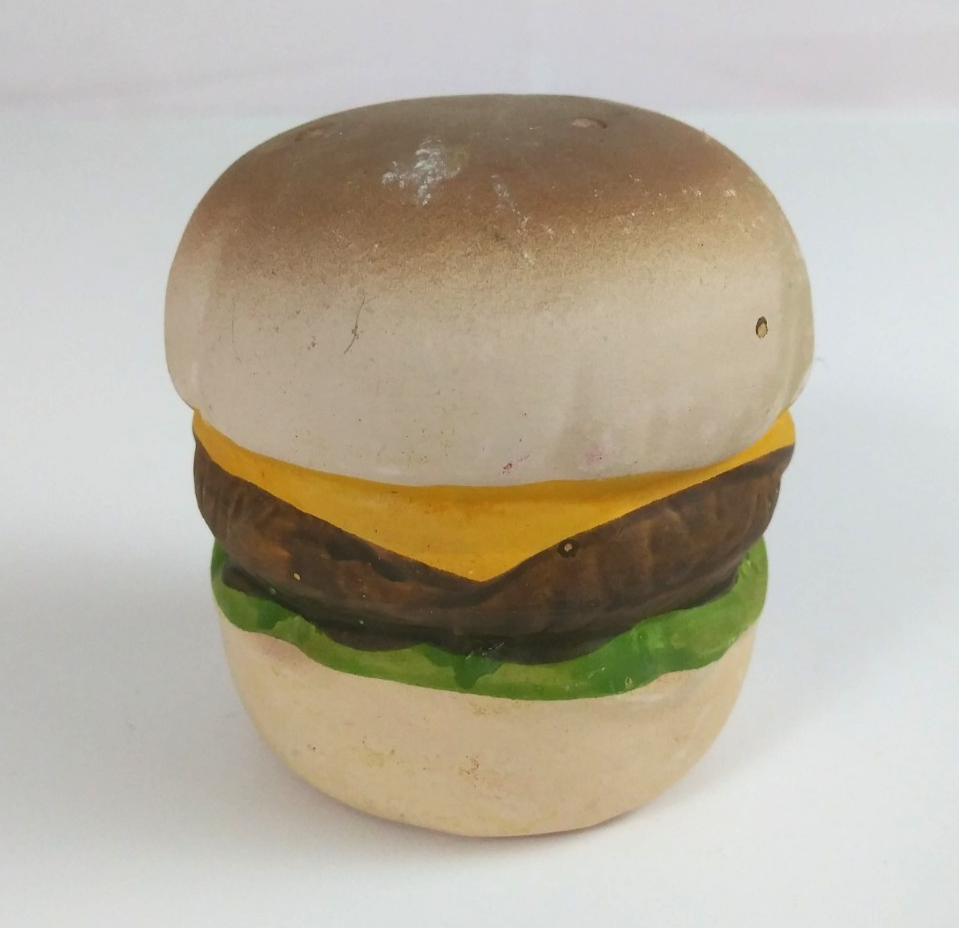 Vintage Nick Kouretas Hand Painted Cheeseburger 2.25" Salt & Pepper Shakers