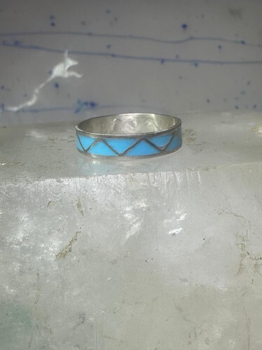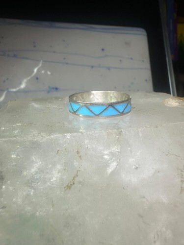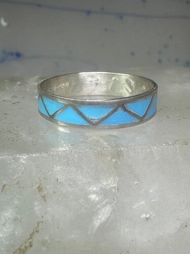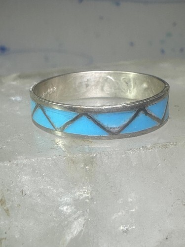 Vintage Zuni ring reconstituted turquoise size 11.5 wedding band sterling silver