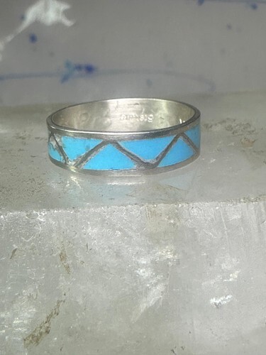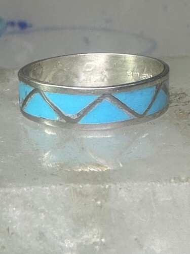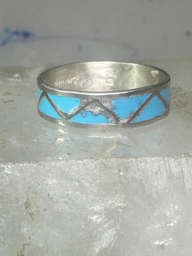 Vintage Zuni ring reconstituted turquoise coral size 8.50 wedding band sterling silver