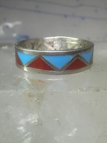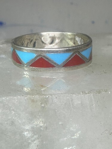 Vintage Zuni ring turquoise coral size 8.75 wedding band sterling silver