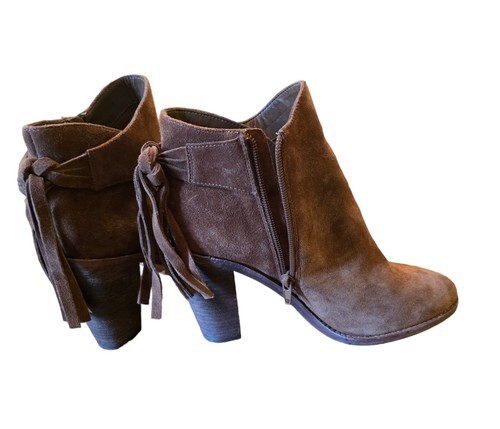 Vince Camuto Tan Western Suede Fringed Boots with Heel and Zipper Sz 8M Like New